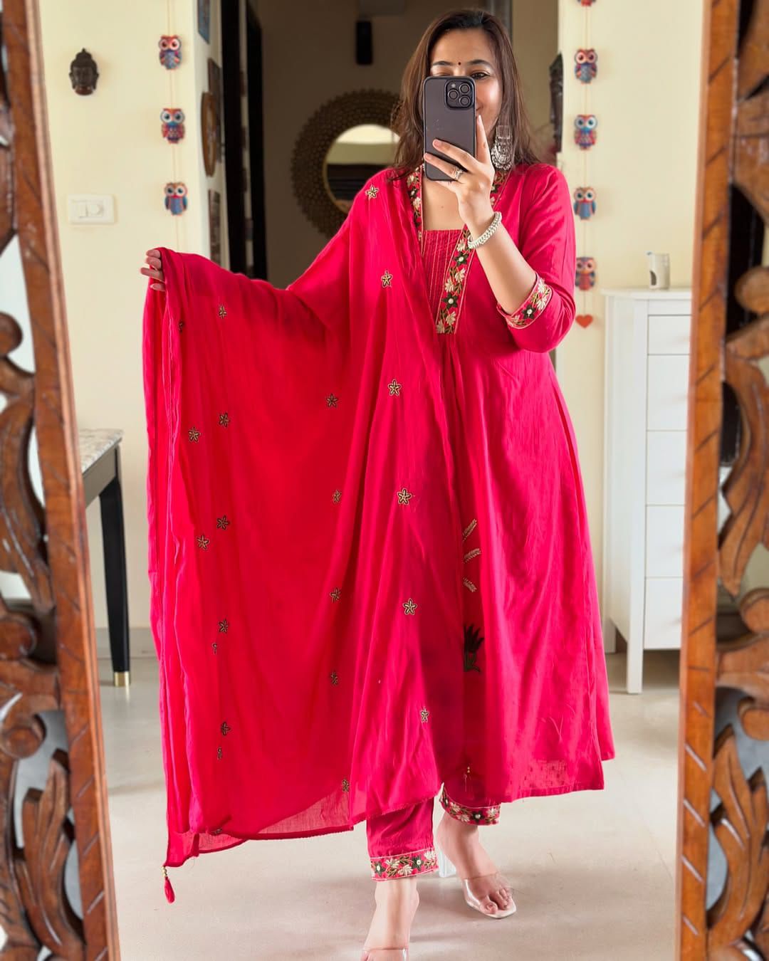*🌹🌹Pure fine Cotton fabric Kurti with Pant with cotton 100-100 Dupatta*🌹🌹