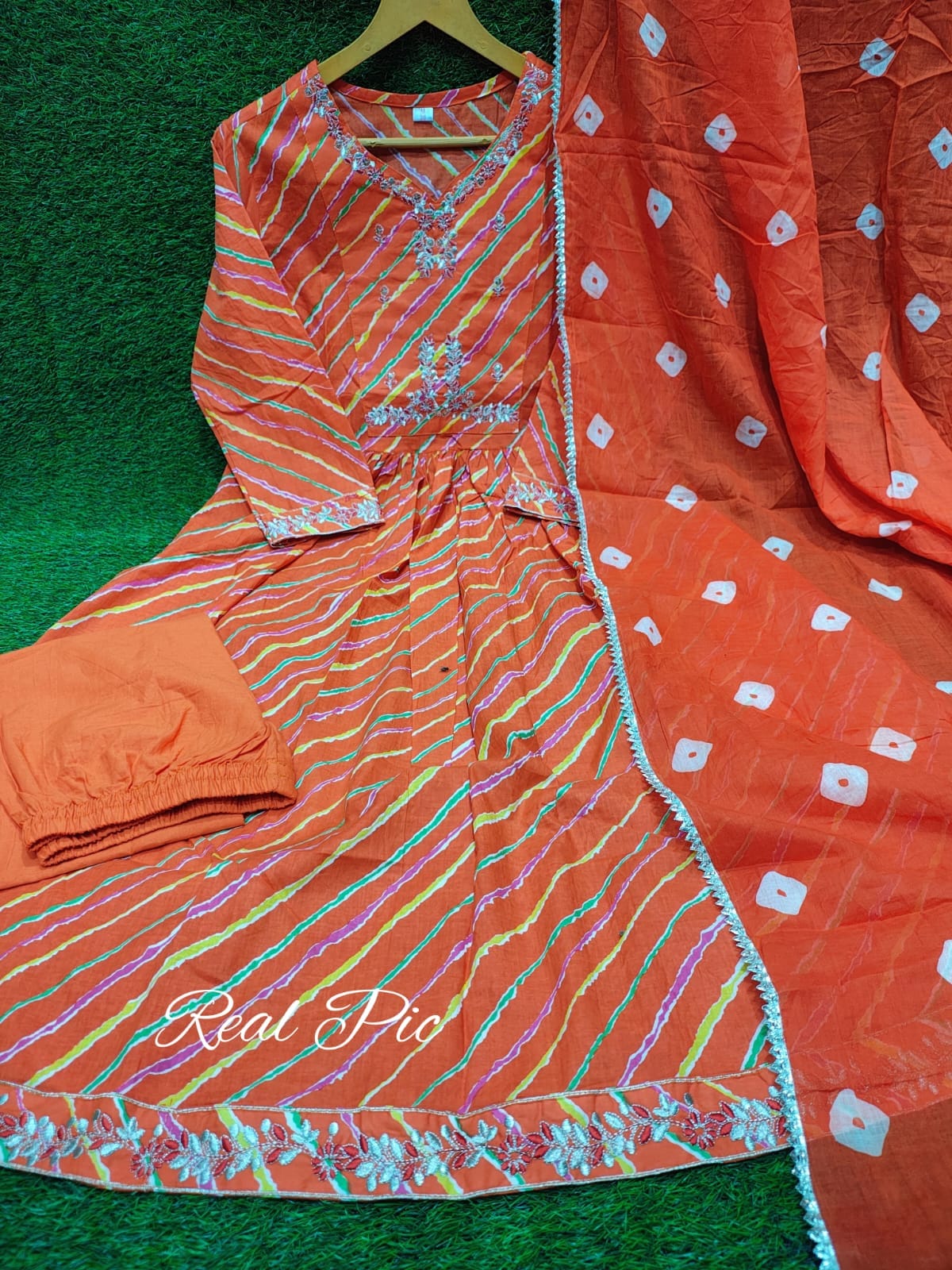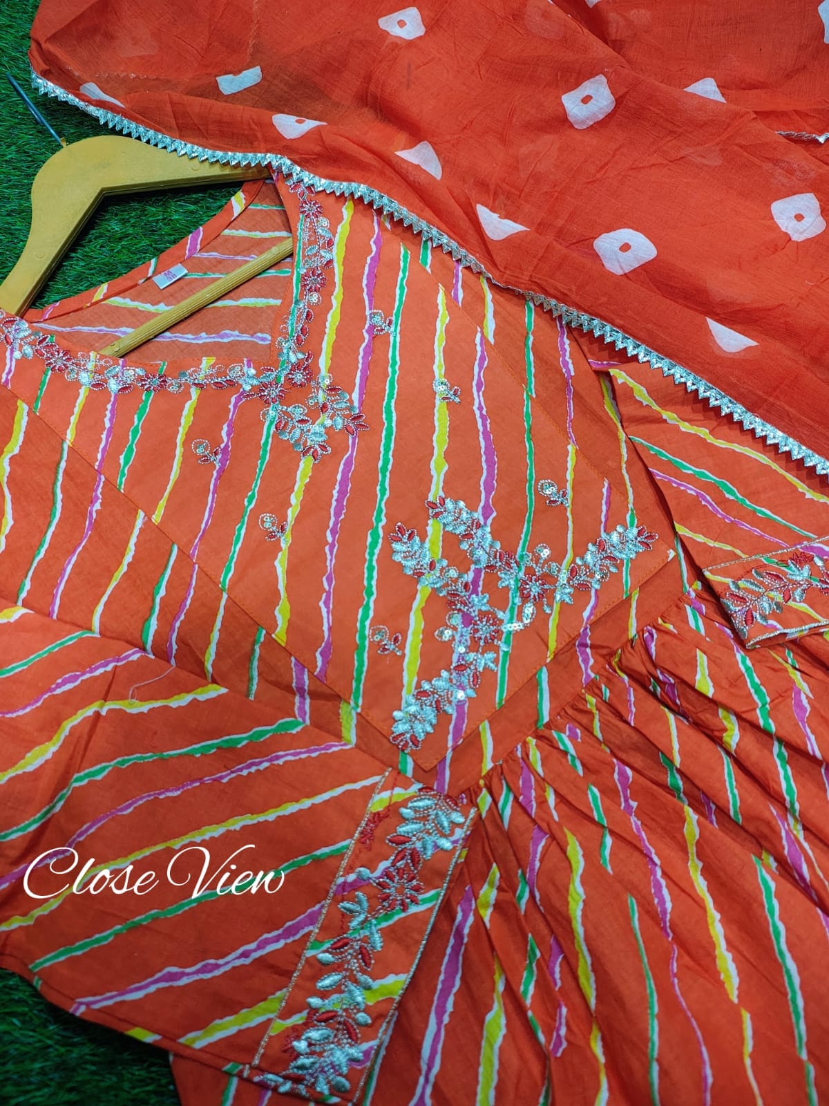 "Seize the day" with a classy Indian Jaipuri print Anarkali leharia cotton suit set.